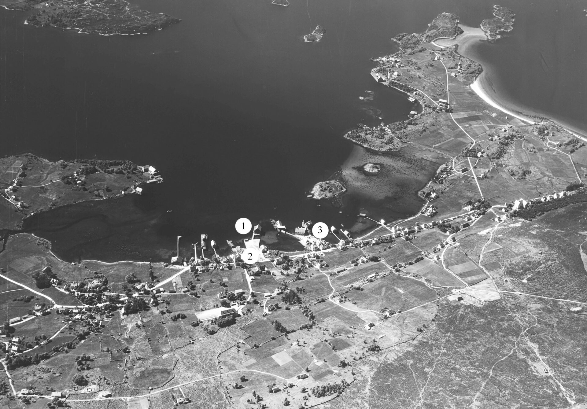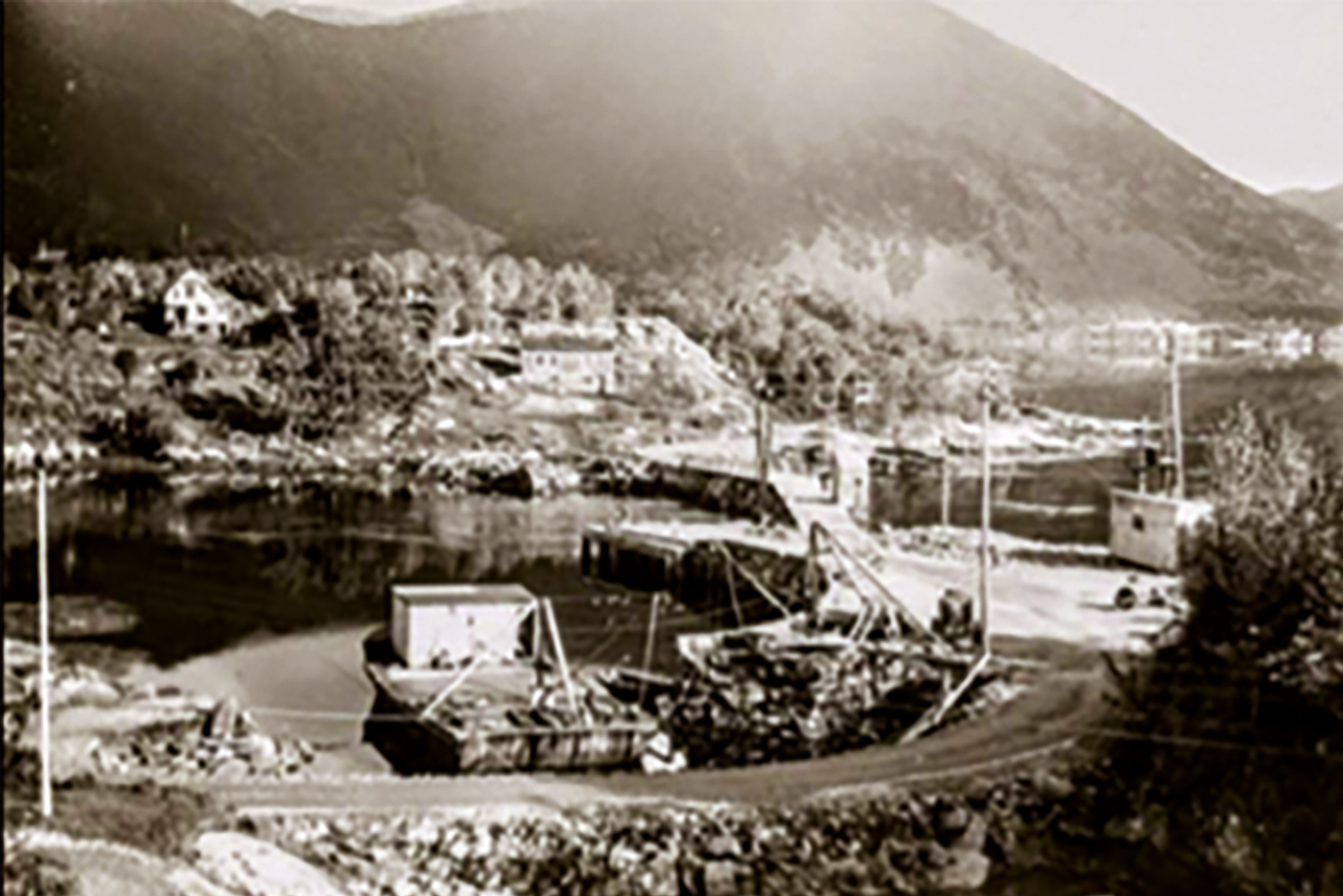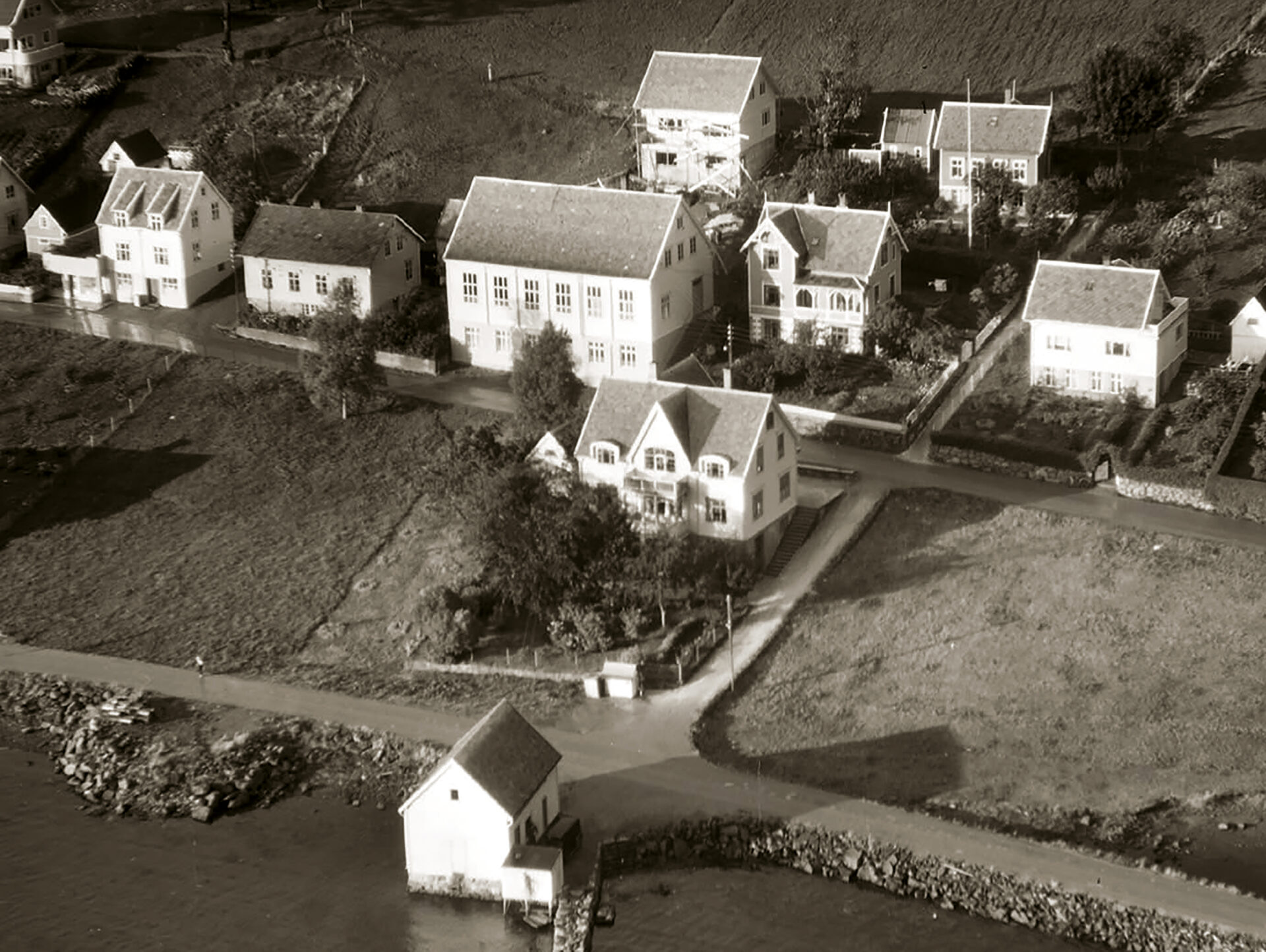 Dette bildet (til høgre) er av Ulsteinvik sentrum og er mest truleg teke våren 1936. Bildet er henta frå Widerøe Flyveselskaps flyfoto.