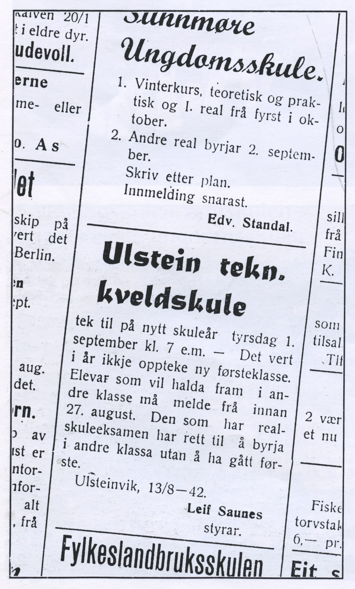 Biletet til høgre: Det er ikkje så lenge sidan det berre var eit lite mindretal som gjekk vidare på gymnaset eller studerte ved høgare lærestader. (Vikebladet 1966)