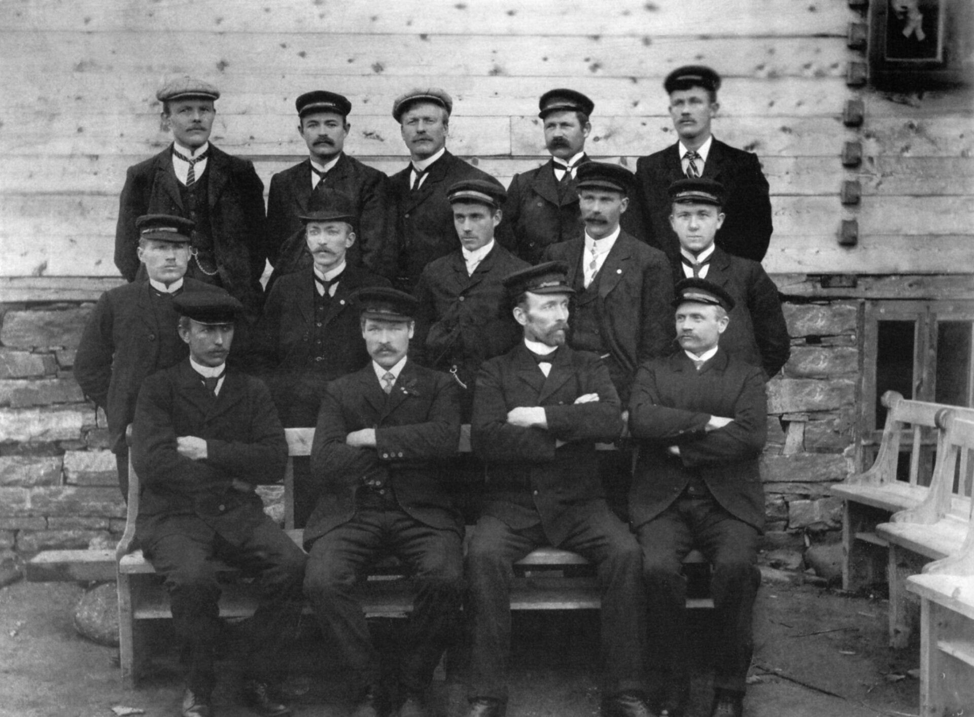 Ulstein Mannskor anno 1910. Ståande bak frå venstre: Peter R. Hatlø, Julius Ulstein, Olav Eiksund, Hans Osnes Saunes og Nils Osnes. Andre rekke frå venstre: Gustav Osnes, Ragnvald Ulfstein, Johan L. Ulstein, Peter R. Osnes og Thomas R. Hatlø. Fremst frå venstre: Enok P. Hofset, Rasofiel Hatløy, Enok Hasund (dirigent) og Ole Flø. Ulstein Mannskor vart skipa 4. november 1884. Det var Ulstein Ynglingeforening, skipa i 1882, som etter foredrag av Ulstein-læraren Karl Hatlemark ”Om sangen” gjorde opptaket til å få koret i gong.